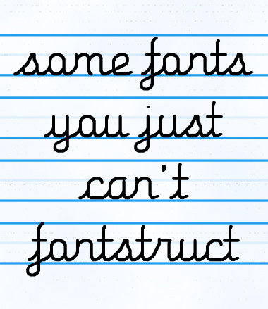 @Stewf: I'm working on a newer phrase that goes something like this> "Some fonts you can only FontStruct." It seems to be more empowering for my favorite software app.
