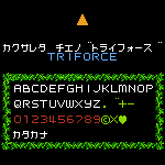 Recreation of the pixel font from Nintendo's original "Zelda no Densetsu: The Hyrule Fantasy" (1986) on the Famicom Disk System.