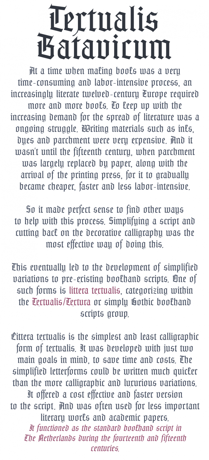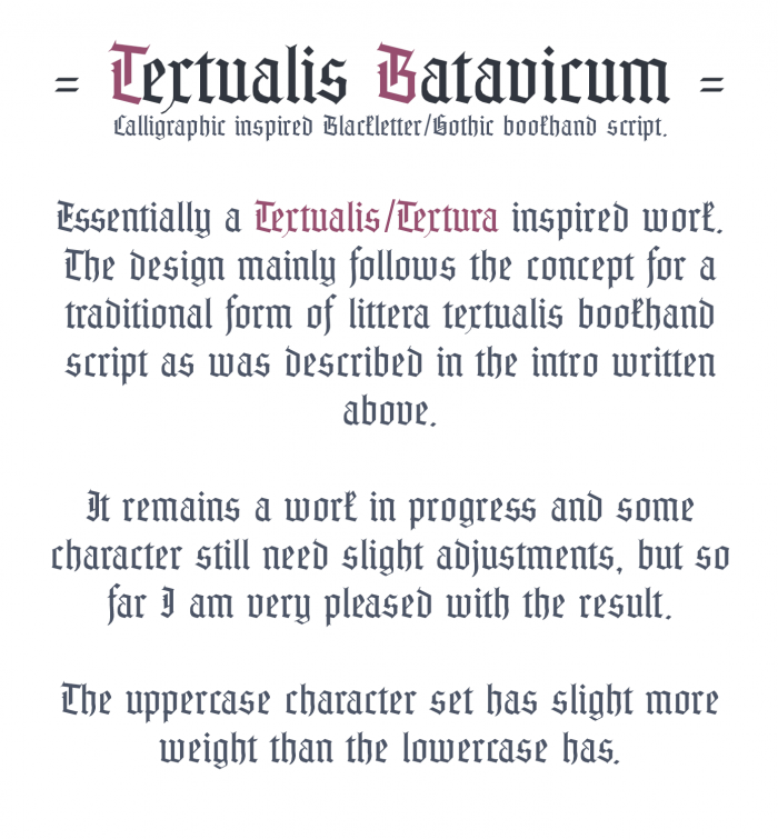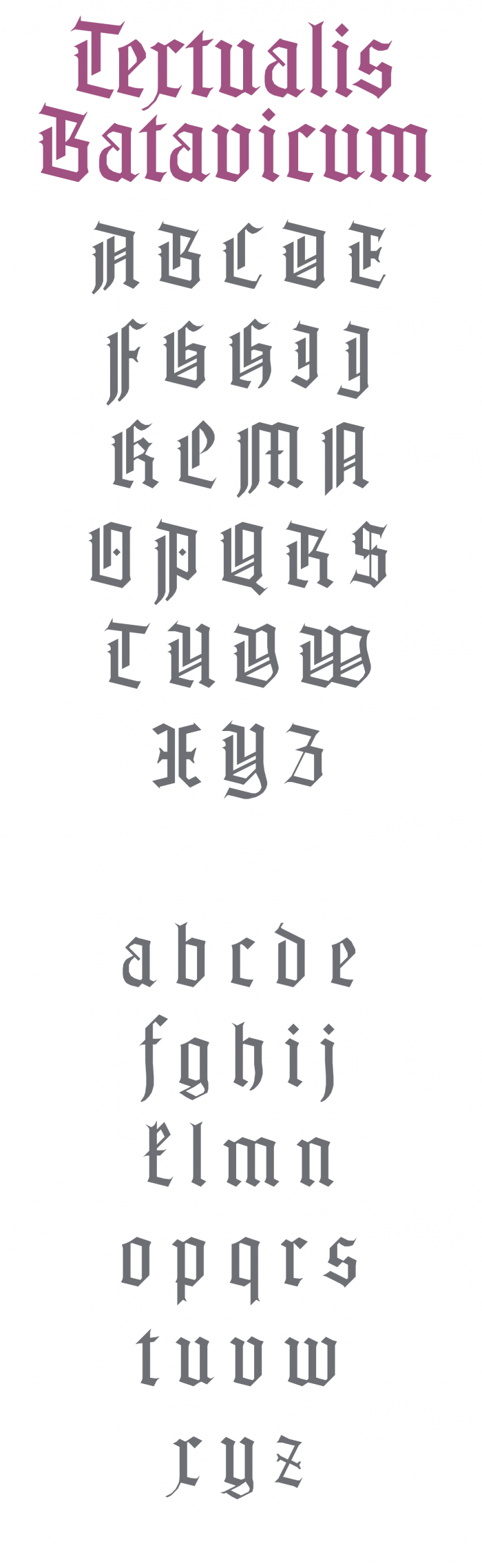 TEXTUALIS BATAVICUM - A calligraphic inspired Blackletter/Gothic bookhand script. Essentially a Textualis/Textura inspired work.