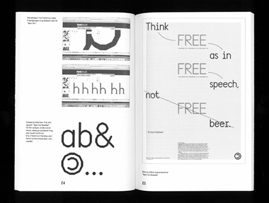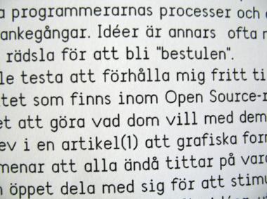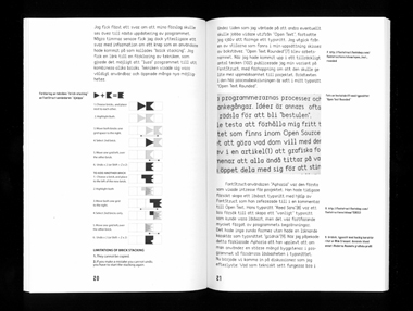 My diploma work is in swedish, but since it's about Open Source I've put up all material from my work for download. You have a PDF of the book that you can have a look at and also another font plus the indesign file etc... Just visit this link and click the copyleft symbol (the zip is a bit big tho)