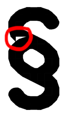 I also found this random hole that probably shouldn't be there in the § (Where the red circle is in the sample)… I also noticed the accent was flipped in the lowercase ý, It should be an acute accent and not a grave accent…