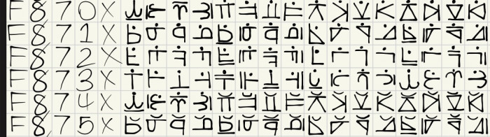 Camellian has been moved around and fixed (including a new character addition), and has been renamed to UUFO. Added The Calling Cipher, Kaotican, and some MUFI additions from the Menota Handbook. Also fixed a Lakota glyph.