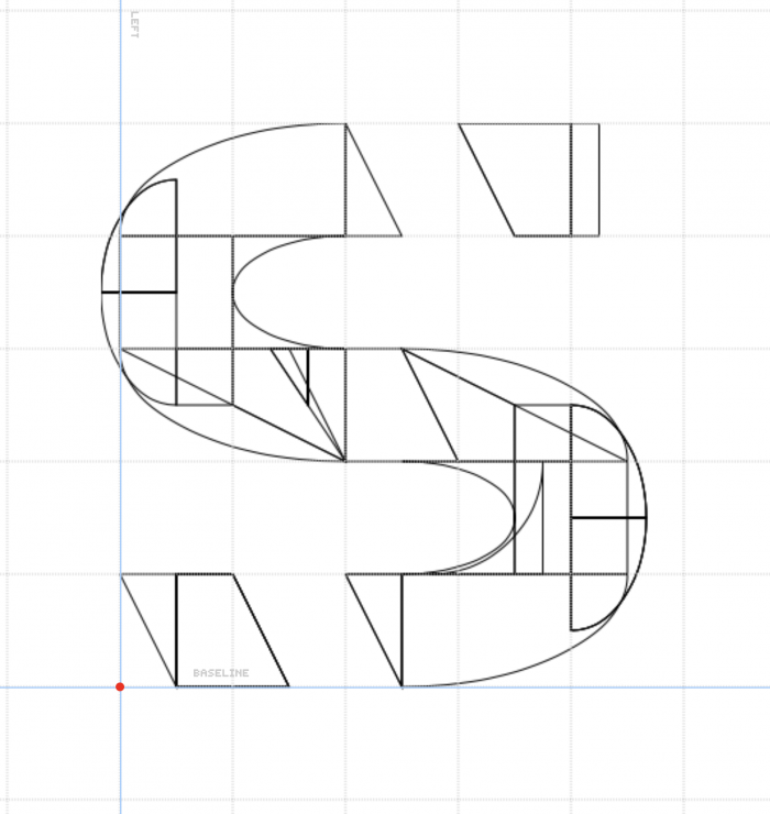 Trying an unusual oblique way to spacing the parts in a stencil font. Looking at the glyphs, I'm not entirely satisfied with the final aspect of my "s", any suggestion to improve it (or also for other letters) are welcome. Thanks in advance. ❤️