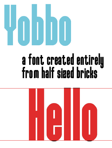 This has been in the making for quite some time and I was only able to work on it because of the new fontstruct features. all bricks i used for this fontstructions were half-sized bricks. i mean half-circles, half-sized blocks and so on. also i worked with 1.75 scaling. thanks to this kind of setup i was able to create roundings, that go a little over or below flat-shaped letters. see the sample. also lower case letter like l, k, h and so on are a little taller than upper case letters, like in "real" fonts.