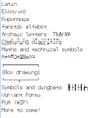 Added Superscripts and Subscripts, Currency Sumbols, Letterlike Symbols, Number Foems, some Arrows, and Mathemtical Operators.