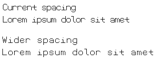 Should I leave the spacing as is, or should I make it two block wider? If I make it two blocks wider, the character cells will be 12*24 instead of 10*22, which is more convenient. Also, should the perion, comma and similar punctuation be bigger?