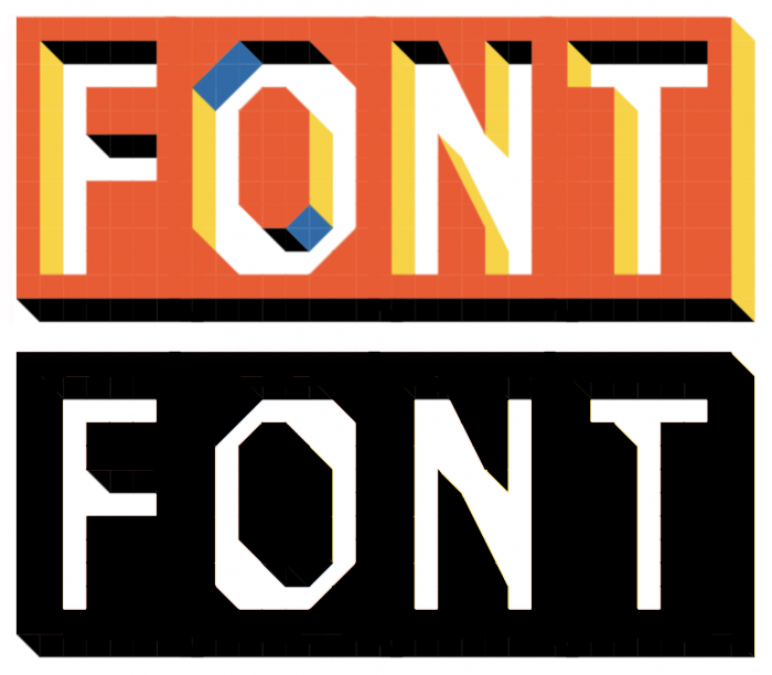 This is just a silly unicase font with alternates, made with simple squares and triangles (and some few other bricks)... But the colours captivated me. I hope you like the result. PS: You can also find an additional colour space (if you need it) in the "|" glyph.