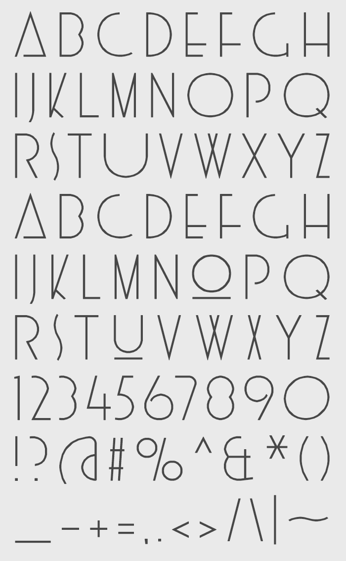 Other than that the two fonts remain unrelated and Seadwellers poses no resemblance to Aquamarine. Instead I sort of did a 1920s Art-Deco style lettering with thin geometric letterforms. It's comes as a Majuscule only and the letters have nice quirky width variations, with some letters appearing almost extended, while others are more narrow.