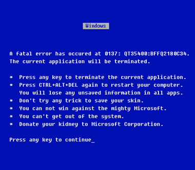 Oddly enough, I've hardly run into the "blue screen of death" during all of my computing years... I guess I'm one of the lucky few.