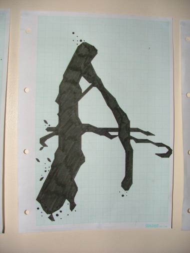 Your method has some very intentional and well-considered constraints, so please don’t get me wrong. They are especially apropos to the subject matter from my highly personal perspective. I too was enamored with Steadman’s lettering on the Fear and Loathing in Las Vegas book jacket. So much so that I actually scavenged a cardboard box once containing movie poster for the same so that I could roughly tear out the title (which for some reason was on this cardboard box :) and pin it up as the center piece for the large and eclectic collage which adorned one of my teenage room’s walls. Whenever I see these letters, I can’t help but imagine them in this context – as thick black ink pooling erratically on the surface of rotting corrugated cardboard with the underlying, prison-bar like rib pattern still showing through as they characterize the surface flow. The four–angle grid yields a very similar quality.
