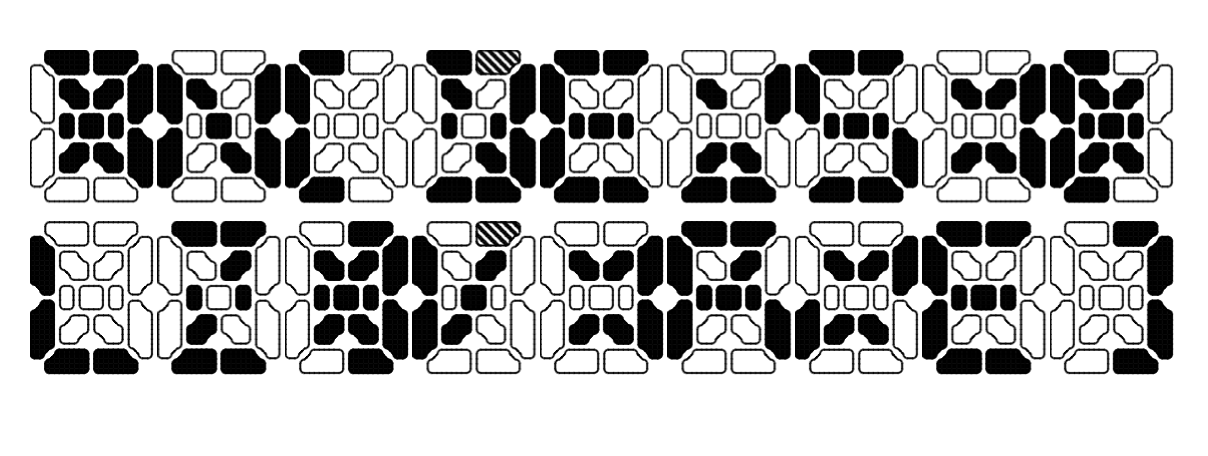LN(VERSE): A kind of "off" 15 segment display with two light levels. Capitals are an inverse of the lowercase. Inverted [] on (). Filled grid on $, half tone filled grid on #. The "Outlined" grid is on the ~, so you simply have to type it before the letter you want to have the outline on.