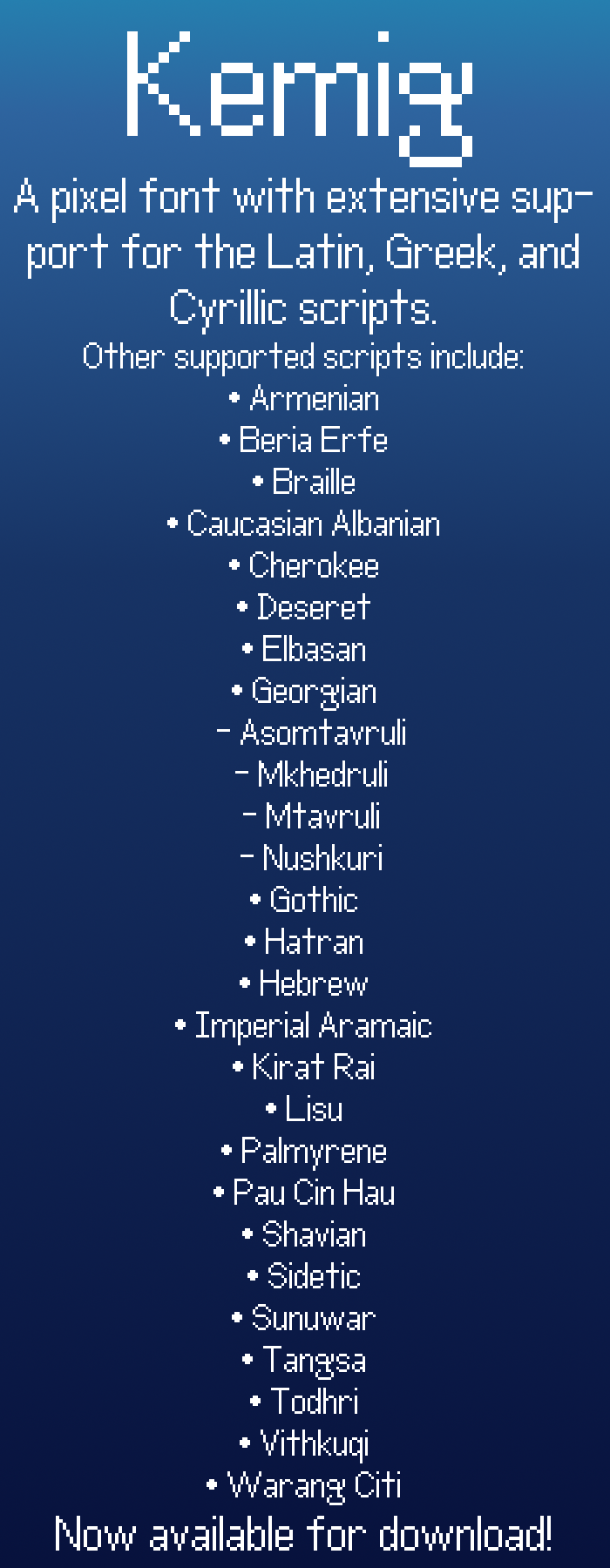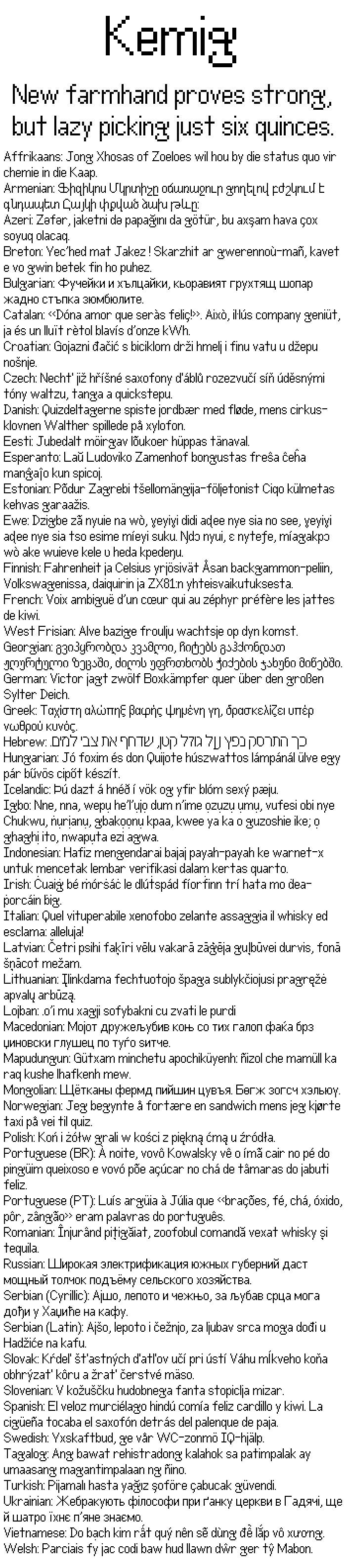Note: The Bulgarian, Macedonian, and Serbian Cyrillic texts doesn't appear correctly due to FontStruct's lack of locl OpenType feature.