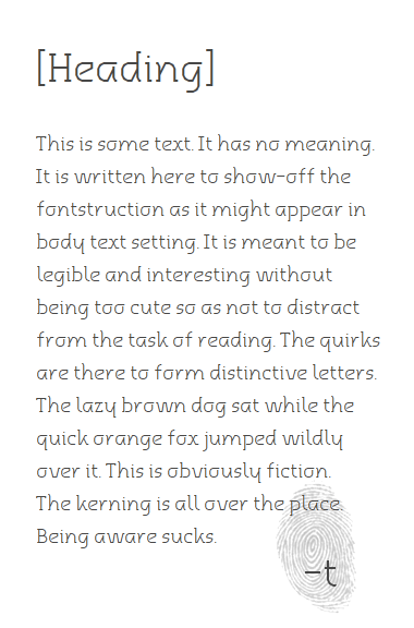 The designer of this FontStruction has chosen not to make it available for download from this website by choosing an “All Rights Reserved" license.