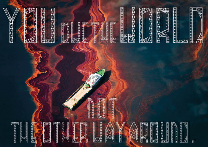 OIL RIG is based on the theme "destructive" particulary with regards to environmental destruction. I based my font on the structure of oil rigs; I think they have sense of beauty about them, but behind that there is a sinister note, as they are facilitating the human led destruction of our planet.