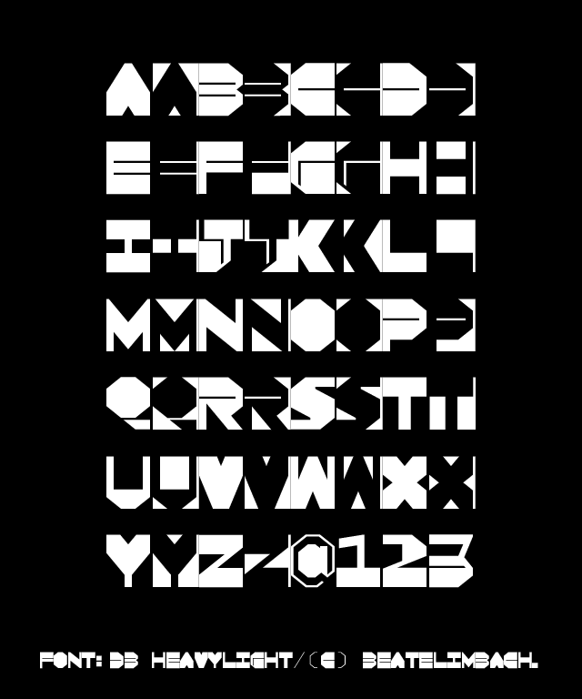 Lovely futuristic typeface, the inverted version of the letters works really well, it's an ingenious solution. As always your fonts are top for me.