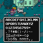 Recreation of the main monospaced pixel font from Ape Inc./Hal Laboratory's "Mother 2: Gīgu no Gyakushū" ("MOTHER2ギーグの逆襲", 1994) on the Super Famicom/SNES.