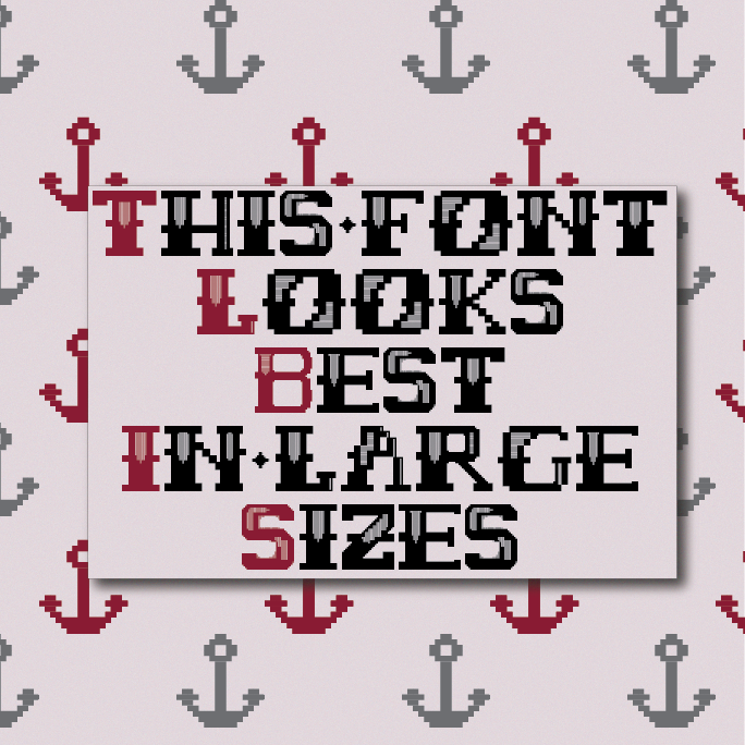 This font is a bold, pixilated typeface. Inspired by classic 8-bit aesthetics combined with traditional tattoo lettering. Perfect for gaming titles, branding, posters and digital artwork. 8bit Sailor stands out in larger sizes, making it great for attention grabbing headlines and logos!