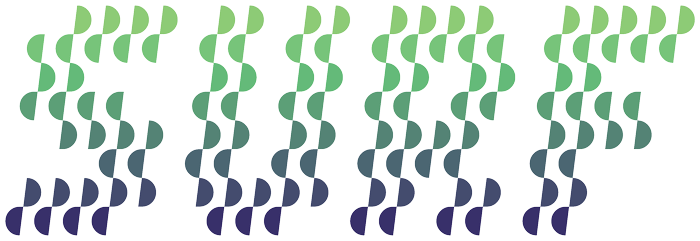 Great use of slanted semicircles to create a playful wobbly effect! Nice gradient as well!