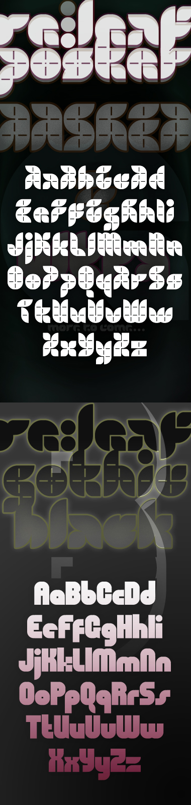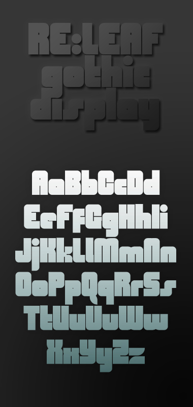 Like brickstacking, the scaling + overlap trick that allows for maximum curves caught on and became the fundamental approach for many later works. Notable examples include those cited above in addition to a collection of other fonstructions by afrojet, thalamic, Em42 (the delisted Mango, one of his first published fontstructions), and DJ Nippa amongst others. geneus1 also made a play on “fractional scaling” with overlaps when he took his own innovative tangent in the aftermath of Re:leaf Gothic.